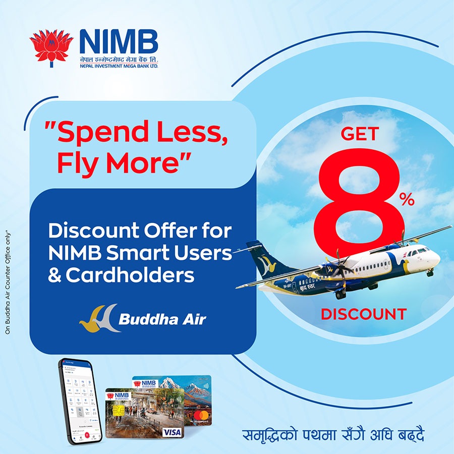 सम्झौता अनुसार टिकटमा छुट लिनका लागि बुद्ध एयरका काउन्टरबाट टिकट खरिद गर्ने ग्राहकले एनआईएमबी डेबिट/क्रेडिट कार्ड वा एनआईएमबी मोबाईल बैंकिङ मार्फत भुक्तानी गर्नुपर्ने हुन्छ ।